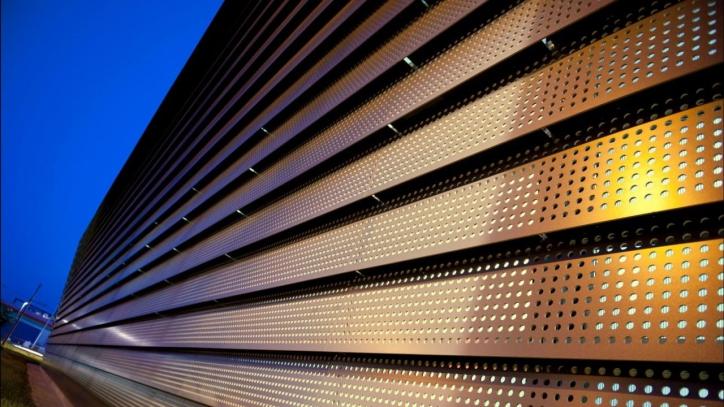 Оцинкованная, нержавеющая сталь и алюминий. 3D-панели, перфорированные решения, декоративные фасады с LED-подсветкой.
