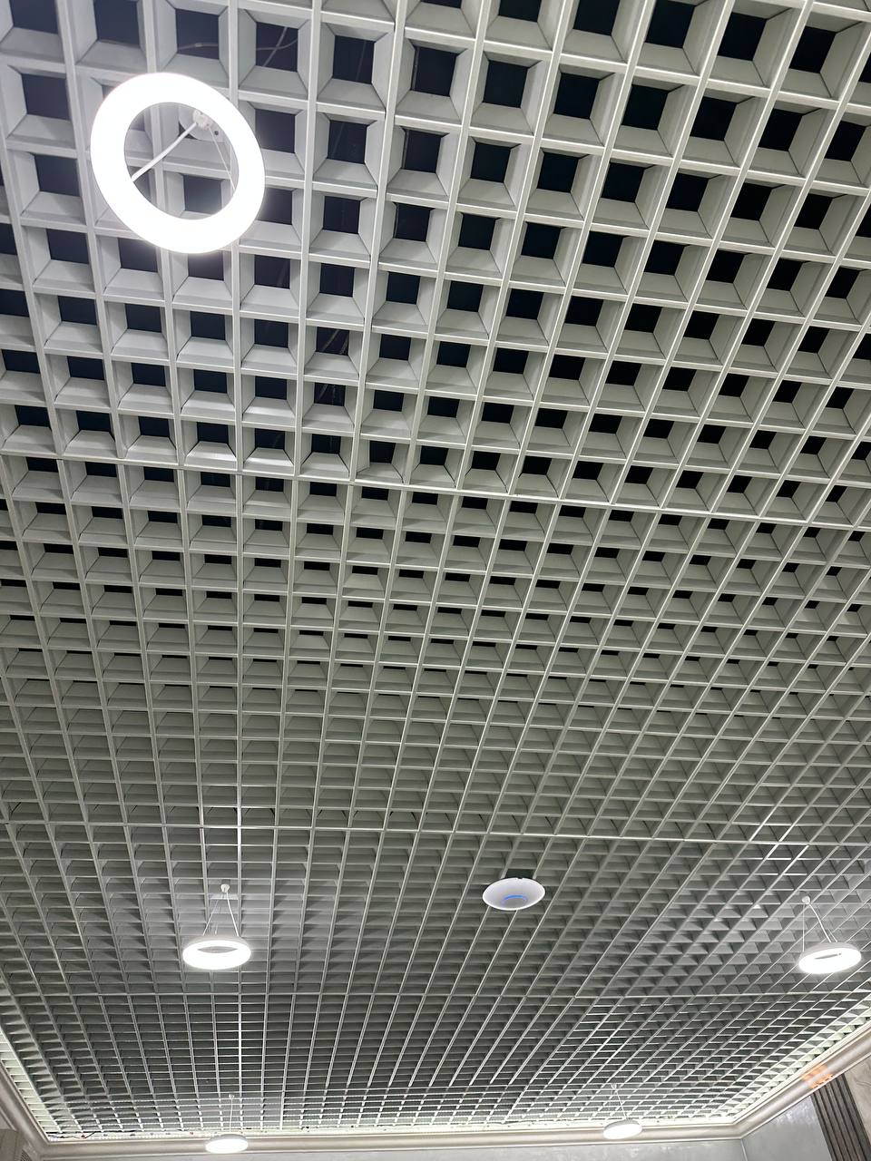 سقف غريلياتو هرمي – سقف ملموس أصلي مع تأثير بصري لمسافة الفضاء. المزايا غريلياتو الهرمي يحتوي على جميع مزايا غريلياتو الكلاسيكي، ولكن بفضل ملف التوجيه الهرمي، فإنه يخفي الأنظمة الهندسية بشكل أفضل. كما أن السقف المعلق يظل شفافًا لتمكين تصريف منتجات الاحتراق وتشغيل أنظمة مكافحة الحرائق. وبفضل شكله غير العادي، يفتح غريلياتو الهرمي المزيد من الفرص للتصميم.